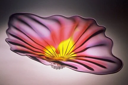 Matt became a glassblower through a random series of events. During this time he was able to define and refine his unique glass blowing skills. Each piece of glass blown begins with multiple layers of jewel tone transparent glass. The piece is then covered with a clear piece of glass and blown into its final form. Matt uses an optic mold to create surface texture. This texture, when combined with the mixture of transparent colors, creates a constantly shifting palette as the piece interacts with the light.